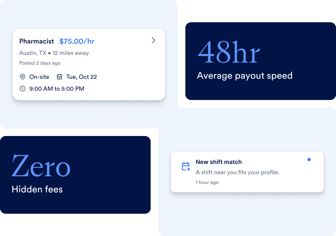 Everything you need to find great shifts, get paid fast, and grow your career — in one place.
