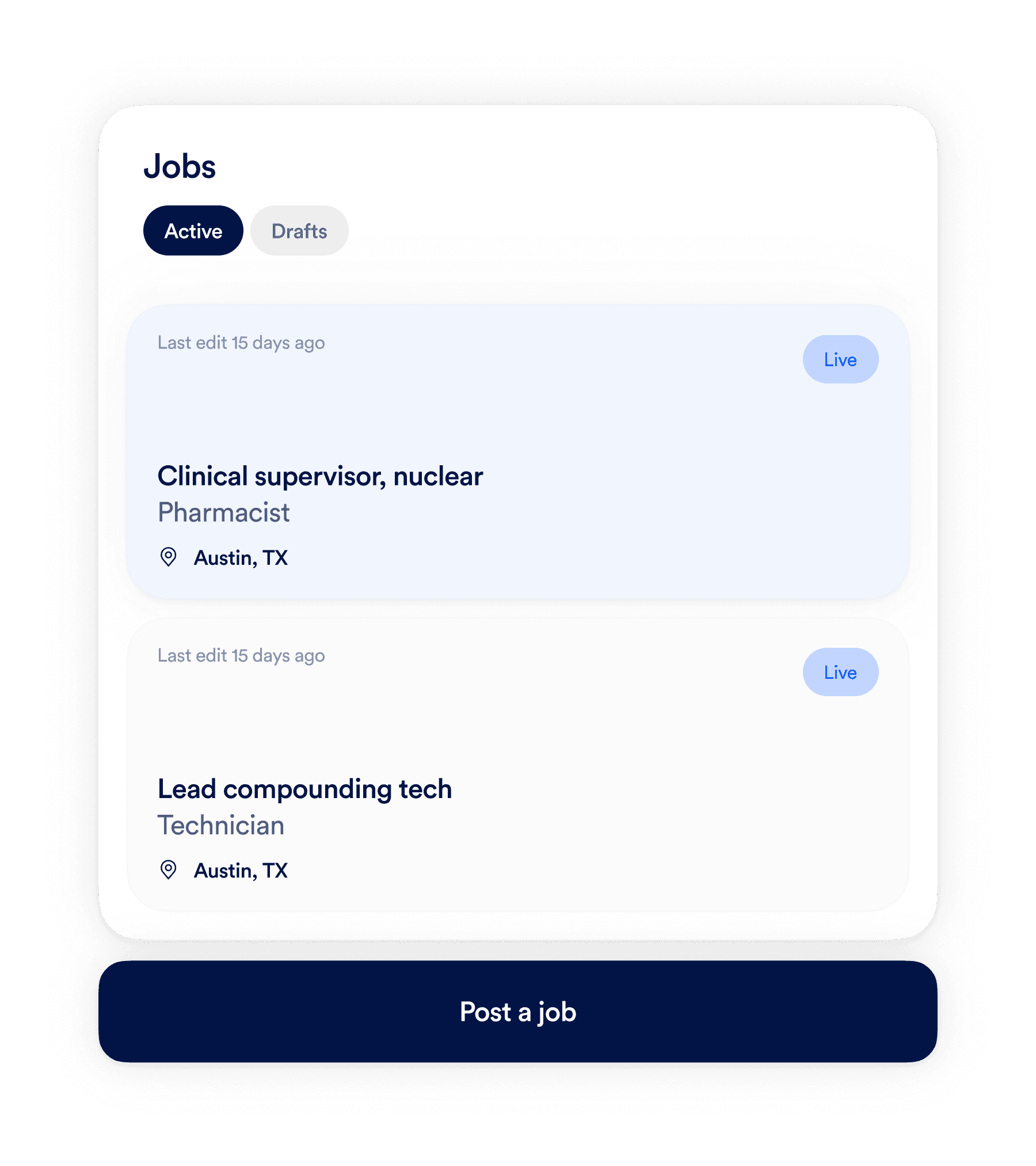 Match your clients with trusted, verified pharmacy staff for PRN shifts and permanent roles across 50 states.