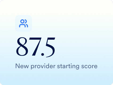 Your rating is built from four areas, each counting equally toward your overall score. New providers start at 87.5 out of 100, which gives you a solid foundation to build from.
